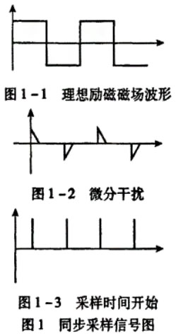 在現(xiàn)行的電磁流量計設(shè)計中,低頻矩形波勵磁結(jié)合了直流勵磁和交流勵磁的優(yōu)點,成為主要勵磁方式之一。在低頻勵磁方式下其干擾主要表現(xiàn)為:由勵磁電流突變產(chǎn)生的微分干擾信號。理想勵磁磁場信號如圖1-1所示,為低頻矩形波,實際上隨著勵磁電流變化(dI/dt)磁場上產(chǎn)生微分干擾信號,如圖1-2,可以看到隨著電流的穩(wěn)定,干擾信號隨之消失,因此同步采樣技術(shù)可以有效抑止微分干擾信號。實際設(shè)計中模數(shù)轉(zhuǎn)化器使用AD公司的24位sigma delta模數(shù)轉(zhuǎn)化器AD7714。AD7714可以分別采用硬件和軟件方式進(jìn)行采樣開始時間控制從而實現(xiàn)同步采樣。采用軟件方式時,當(dāng)控制寄存器中FSYNC位為邏輯1時,模數(shù)轉(zhuǎn)換器處于復(fù)位狀態(tài);向該位寫邏輯0時,器件開始采樣輸入信號。在應(yīng)用中,低頻勵磁信號由MSP430單片機(jī)內(nèi)部定時器產(chǎn)生,同時產(chǎn)生采樣信號。如圖1所示,采樣開始時間滯后勵磁信號1/4個周期。