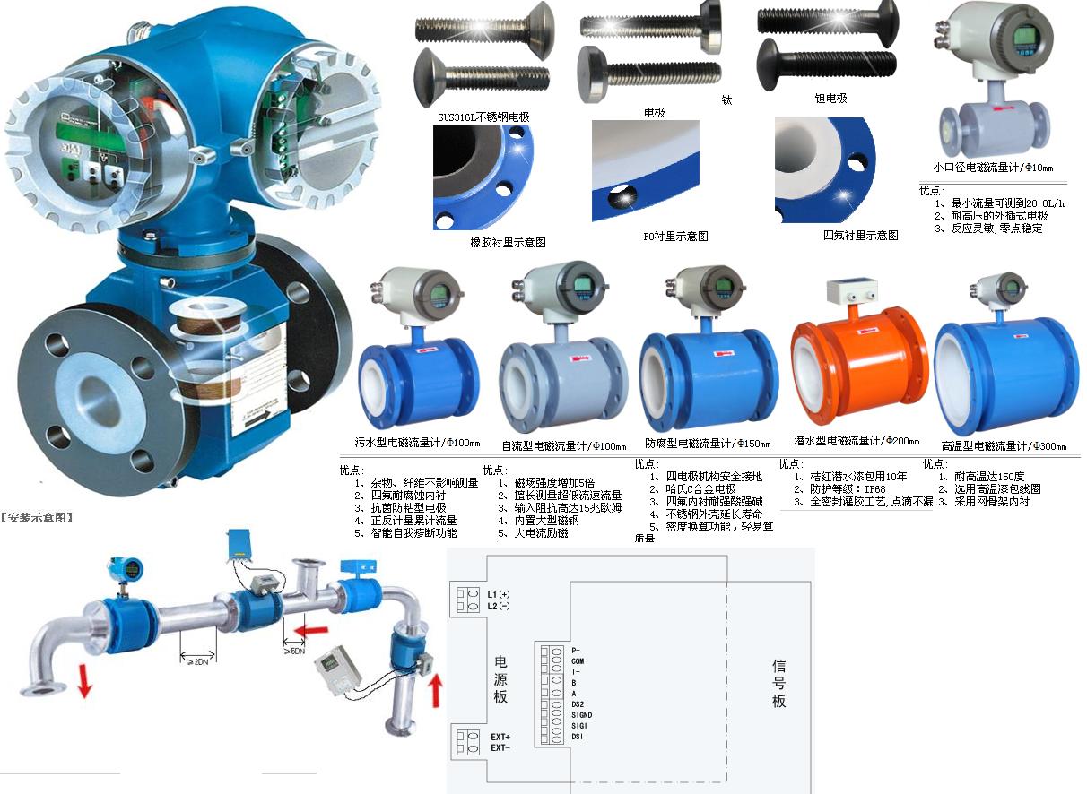 電磁流量計(jì)的測(cè)量通道是一段無阻流檢測(cè)件的光滑直管,因不易阻塞適用于測(cè)量含有固體顆?;蚶w維的液固二相流體,如紙漿、煤水漿、礦漿、泥漿和污水等。不產(chǎn)生因檢測(cè)流量所形成的壓力損失,儀表的阻力僅是同一長(zhǎng)度管道的沿程阻力,節(jié)能效果顯著,對(duì)于要求低阻力損失的大管徑供水管道*為適合。所測(cè)得的體積流量,實(shí)際上不受流體密度、粘度、溫度、壓力和電導(dǎo)率(只要在某閾值以上)變化明顯的影響,與其他大部分流量?jī)x表相比,前置直管段要求較低。測(cè)量范圍度大,通常為20:1~50:1, 污水流量計(jì)可選流量范圍寬。滿度值液體流速可在0.5~10m/s內(nèi)選定。有些型號(hào)儀表可在現(xiàn)場(chǎng)根據(jù)需要擴(kuò)大和縮小流量(例如設(shè)有4位數(shù)電位器設(shè)定儀表常數(shù))不必取下作離線實(shí)流標(biāo)定。電磁流量計(jì)不能測(cè)量電導(dǎo)率很低信號(hào)現(xiàn)象: