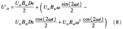 由式(8)可以看出信號經(jīng)過信號處理之后得到U'0,交流部分[UmBmω*sin(2ωt)/2]-[UmBmDv*cos(2ωt)]+[UmBm ω ² cos(2ωt)/2]可經(jīng)過低通濾波器濾除,直流部分UmBm Dv/2經(jīng)過放大后直接輸人MCU進(jìn)行處理轉(zhuǎn)換成流量信號顯示出來。