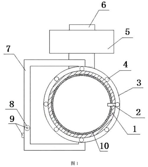 圖中:1、測量導(dǎo)管:2、信號(hào)電極:3、保護(hù)外殼:4、勵(lì)磁線圈:5、信號(hào)轉(zhuǎn)換器;6、智能處理器;7、導(dǎo)管;8、浮子;9、高度測量器;10、絕緣襯里。