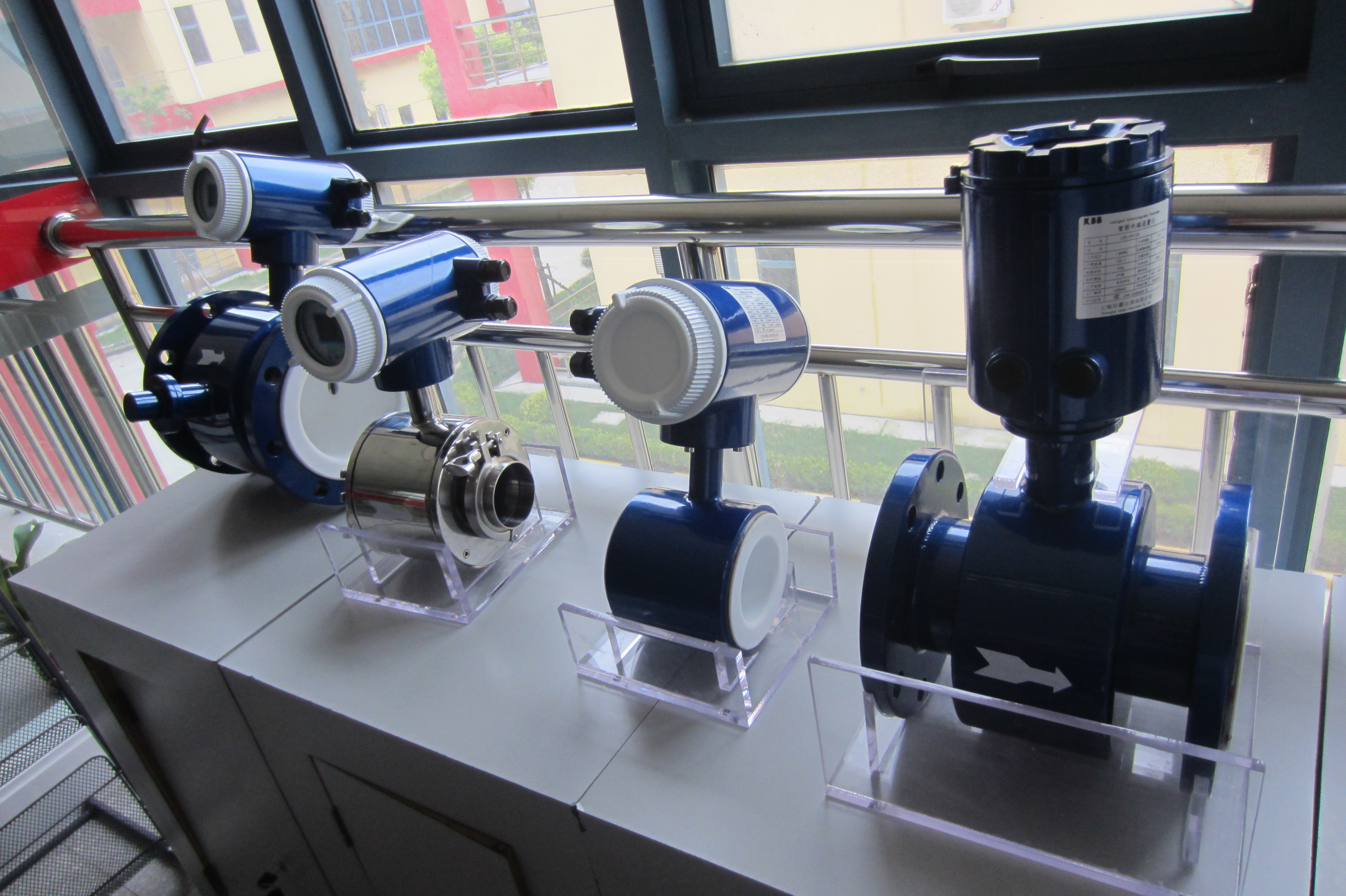 電磁流量計(jì)由傳感器和轉(zhuǎn)換器兩部分組成,是種測量導(dǎo)電介質(zhì)體積流量的感應(yīng)式儀表。它根據(jù)法拉第電磁感應(yīng)原理,在與測量管軸線和磁力線相垂直的管壁上安裝一對檢測電極。當(dāng)導(dǎo)電液體沿測量管軸線運(yùn)動時,導(dǎo)電液體切割磁力線產(chǎn)生感應(yīng)電勢,磁感應(yīng)電勢由兩個檢測電極檢出,數(shù)值大小與流量成比例。傳感器將感應(yīng)電勢作為流量信號傳送到轉(zhuǎn)換器,經(jīng)放大變換濾波及系列的數(shù)字處理,用帶背光的點(diǎn)陣式液晶顯示瞬時流量和累積流量。