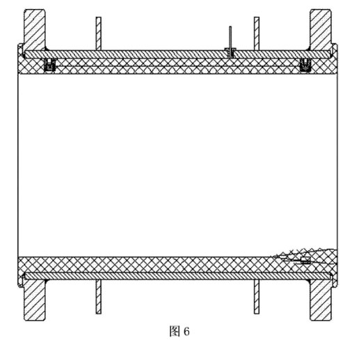 ⑦、將倒入聚氨酯樹脂膠的電磁流量計導(dǎo)管放入110℃的硫化罐中進行硫化,10小時后,撤掉襯膠模具繼續(xù)硫化24小時后完成襯膠。