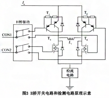 開(kāi)橋開(kāi)關(guān)電路主要由 也 橋路及其驅(qū)動(dòng)電路組成, 用于實(shí)現(xiàn)對(duì)勵(lì)磁線(xiàn)圈進(jìn)行方波勵(lì)磁。 原理示意圖如圖3 所示。