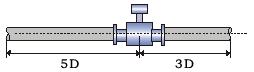 流量計前方*少要有5* D(D為流量計內(nèi)徑)長度的直管段,后方*少要有3*D(D為流量計內(nèi)徑)長度的直管段;