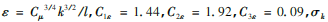 本文的湍流模型采用工程上使用zui**的標準k-ε模型,需要求解湍動能及其耗散率方程。在該模型中,有關湍動能k和耗散率ε的運輸方程如下