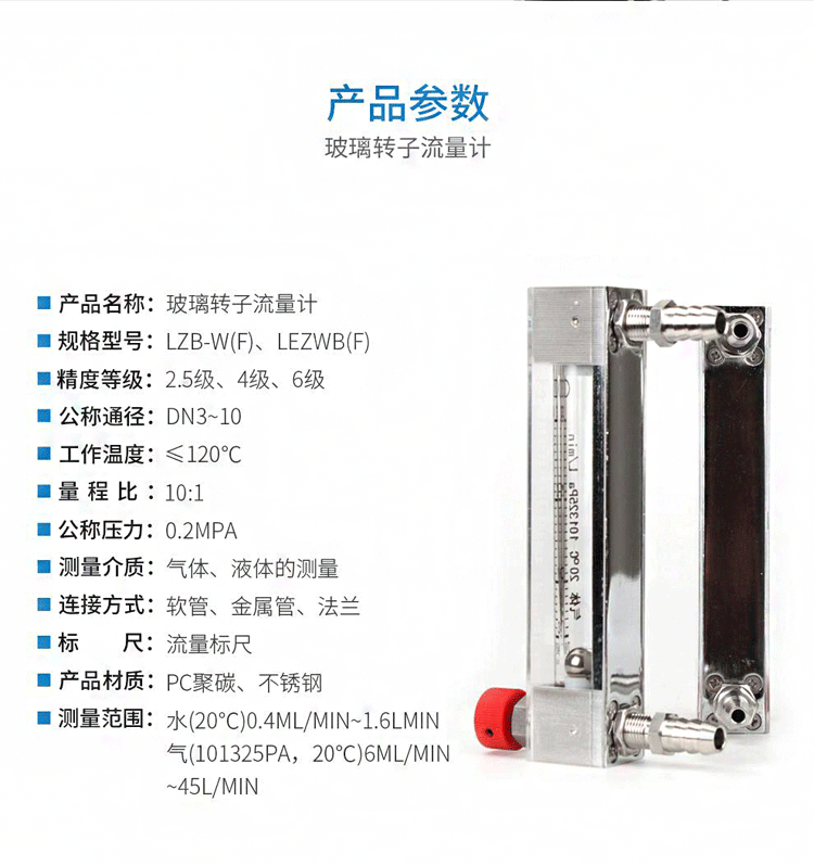 2. 流量計本身性能。根據自身的管道尺寸及現(xiàn)場環(huán)境,可選擇流量計安裝方式,一般玻轉有面板式安裝及垂直安裝兩種,連接方式多樣。如果是小流量范圍,可選用球浮子式,因它測量時穩(wěn)定、不易積塵、精度較高、互換性好。